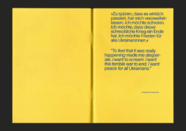 begleitung der kunstausstellung des reclaim kollektivs unter dem motto »reclaim peace«. von dem künstler odo hans und den grafikdesignern tobias handorf und caspar wündrich initiiert, richtete sich der wettbewerb exklusiv an künstlerinnen und künstler aus der ukraine und bot ihnen die möglichkeit, ihre perspektiven und erfahrungen künstlerisch sichtbar zu machen.